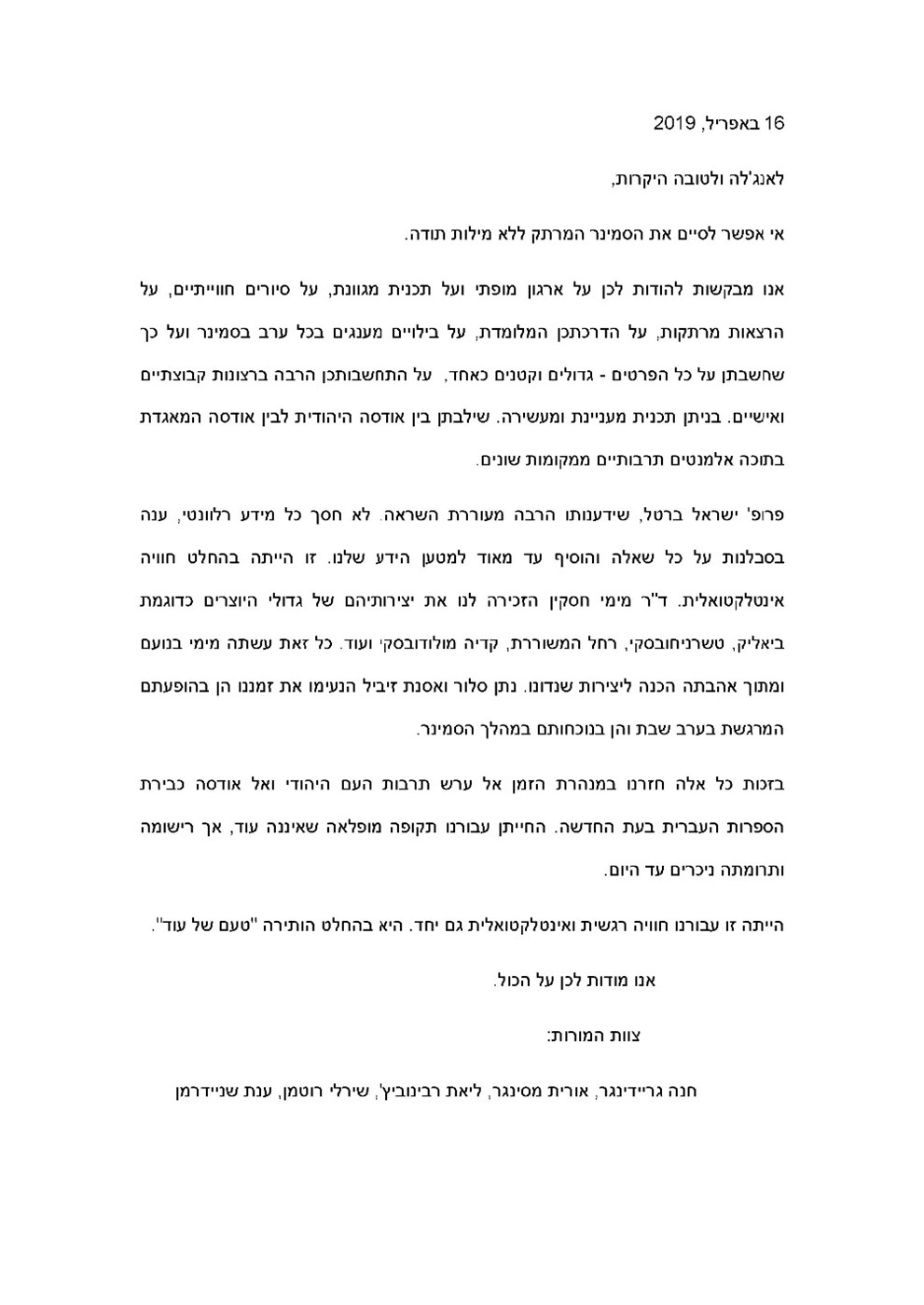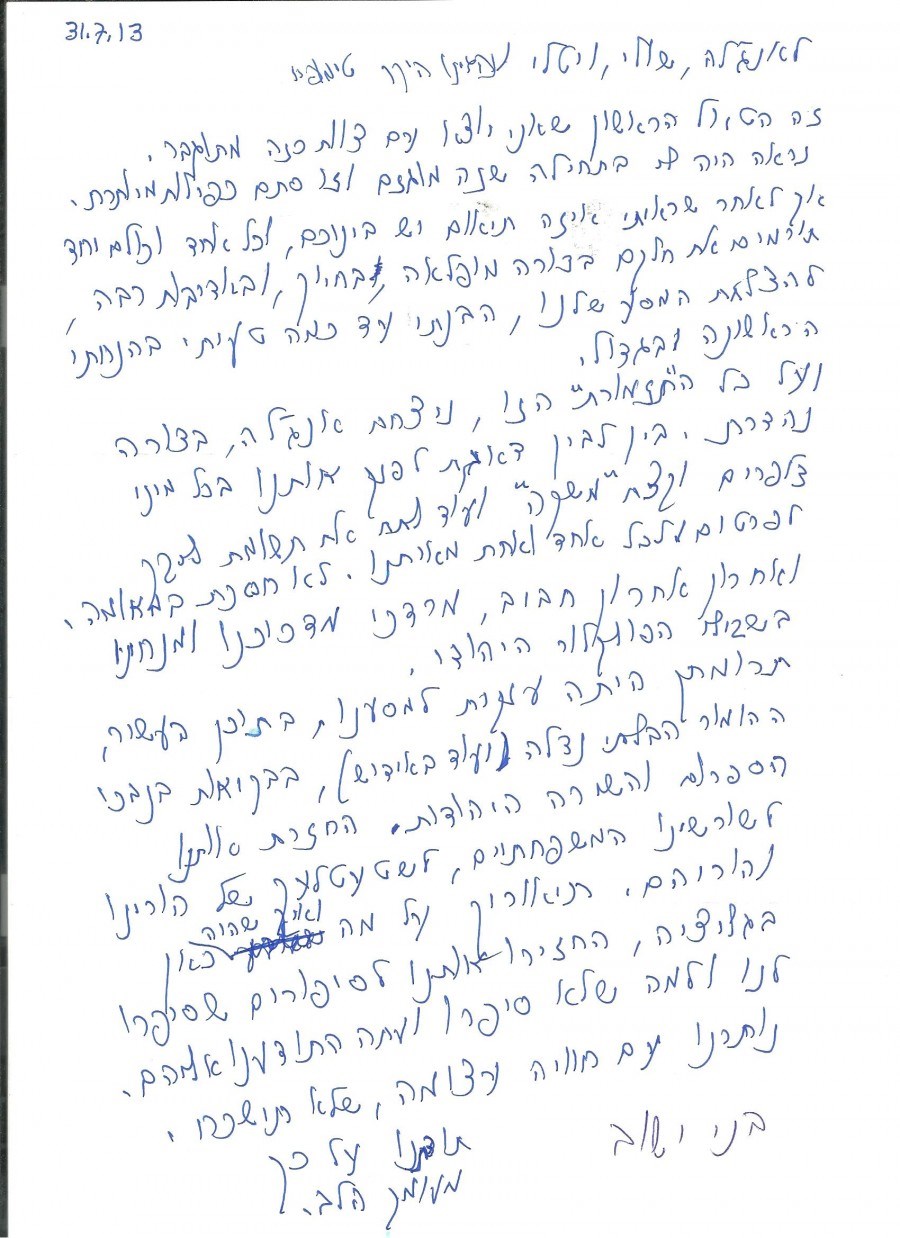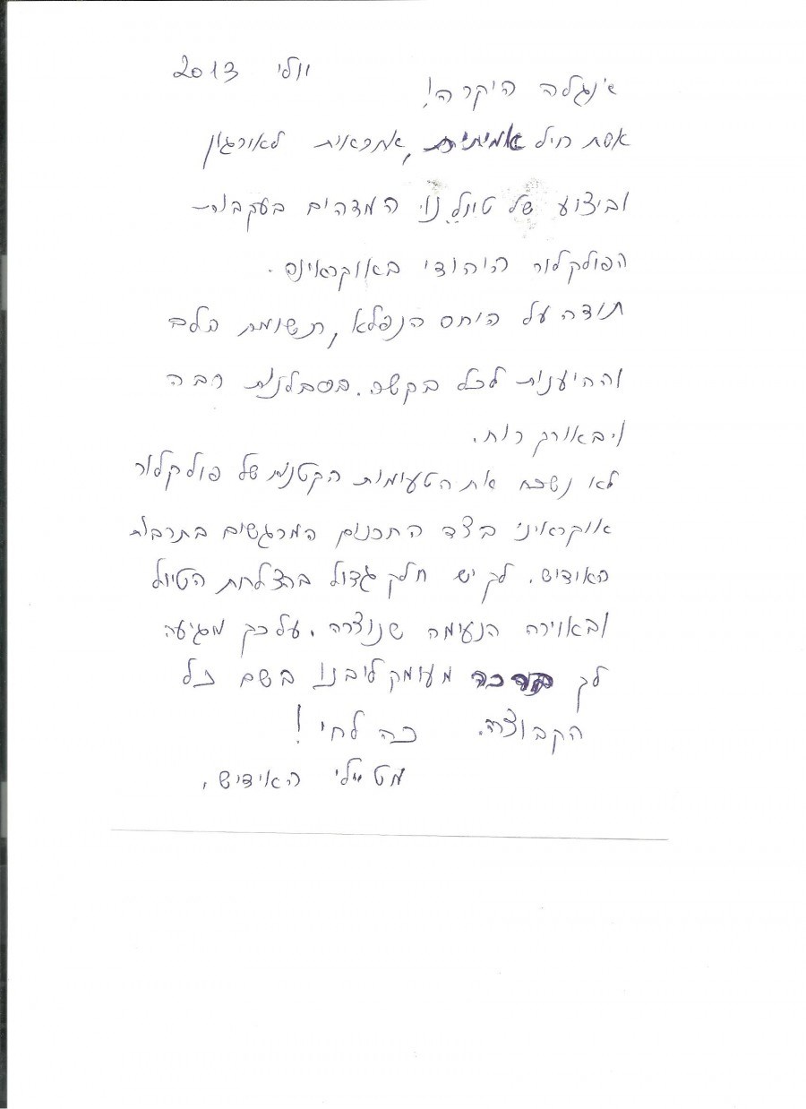 אני מצרפת את מכתבי לד"ר יואל רפל